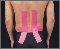 - 2 張 30 公分的醫療用貼布先貼於脊柱兩旁
