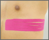 - 輕拉醫療用貼布貼於胸脥部(如圖下)